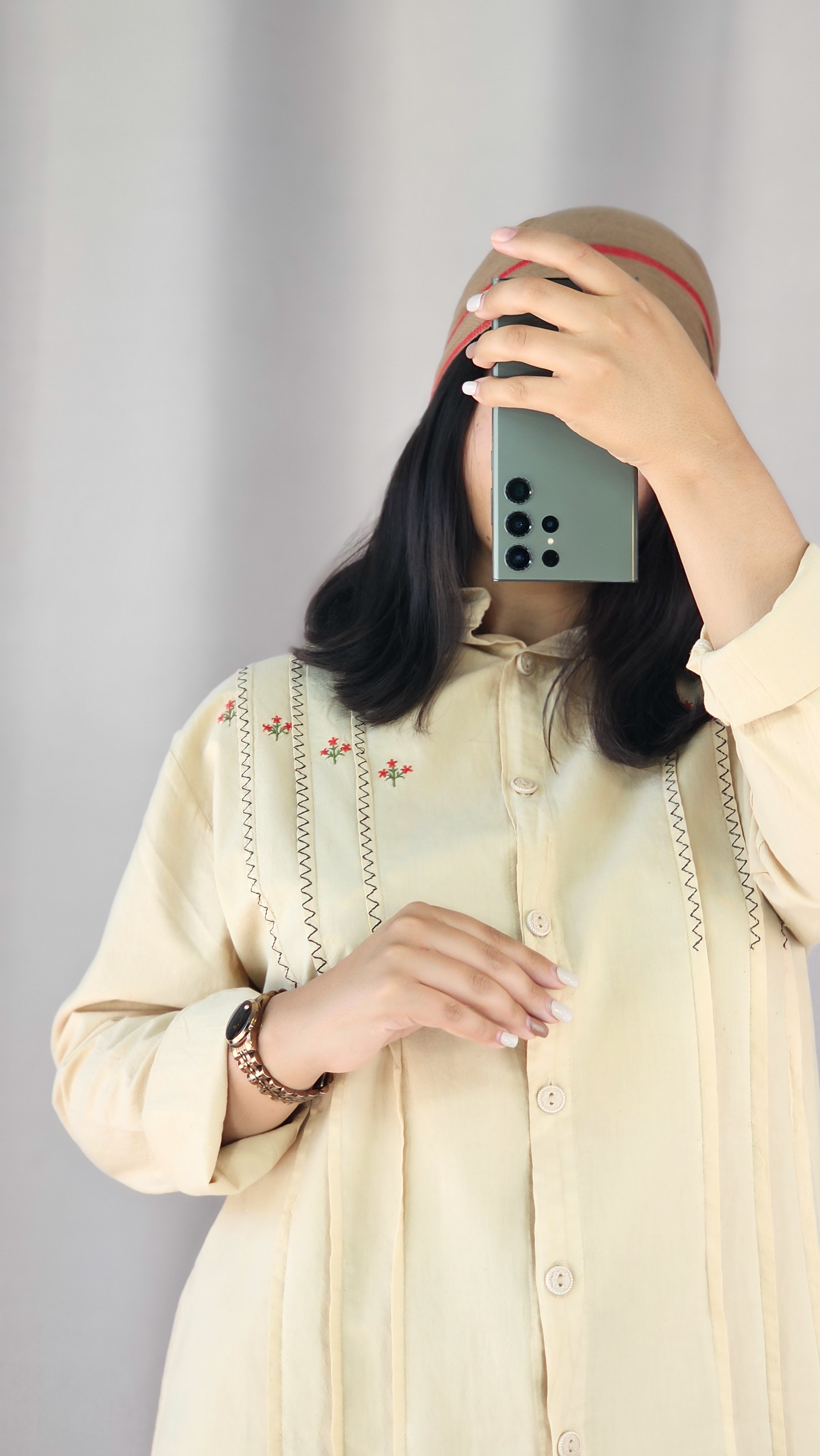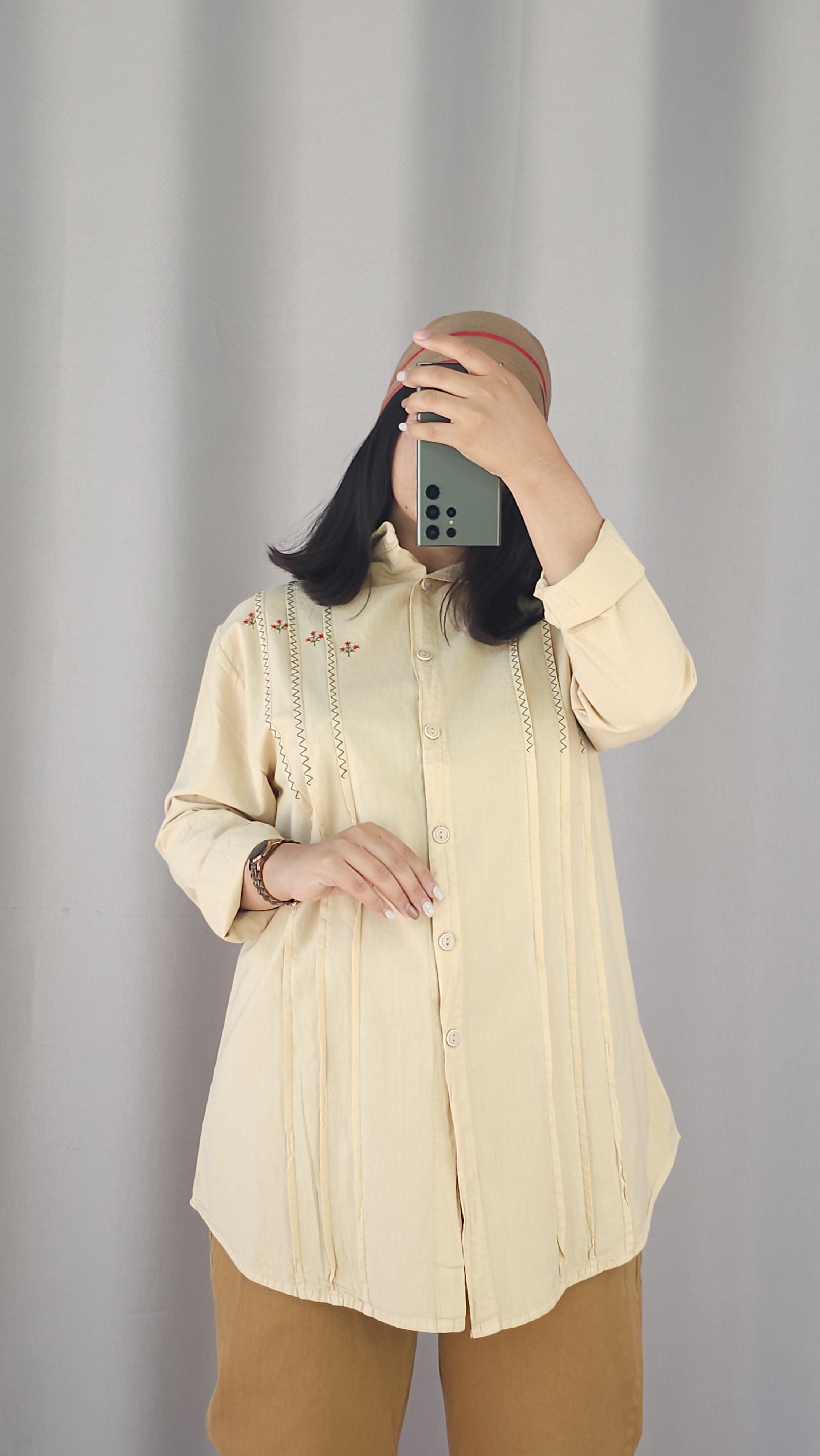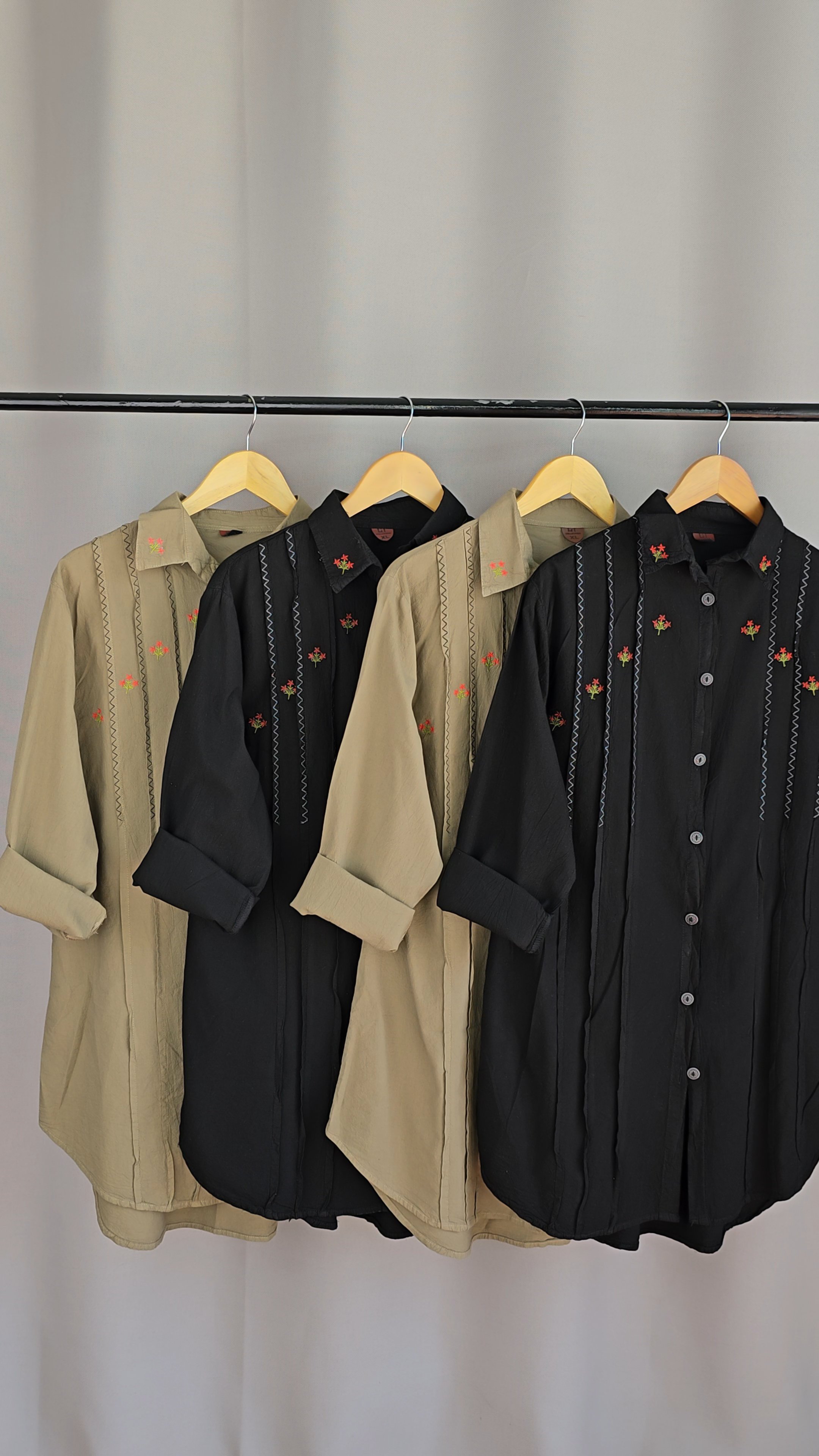 تونیک لاله🌹اگه دنبال یه مانتو هستی که براحتی استایل بشه و قد مناسبی داشته باشه🌸مانتو لینن گلدوزی لاله یه انتخاب عالیه🌸جنس اینکار لینن پنبه هست🌱اینکار شست رفته و تغییر رنگ و آبرفت نداره☁️پس با خیال راحت سفارش بدین☁️کیفیت عالی تماما پنبه ای☁️بالا تنه یه گلدوزی خیلی خوشگل داره که حسابی خاصش کرده☁️جلوی مانتو تماما دکمه کار شده☁️قد آستین کاملا بلنده و لبه آستین مچی و دکمه میخوره🌱فری سایزی مناسب 36-46🌱قد جلو 83/قد پشت 88/دور سینه 110/دور باسن 120/دور بازو 40/قد آستین از کنار یقه 72/