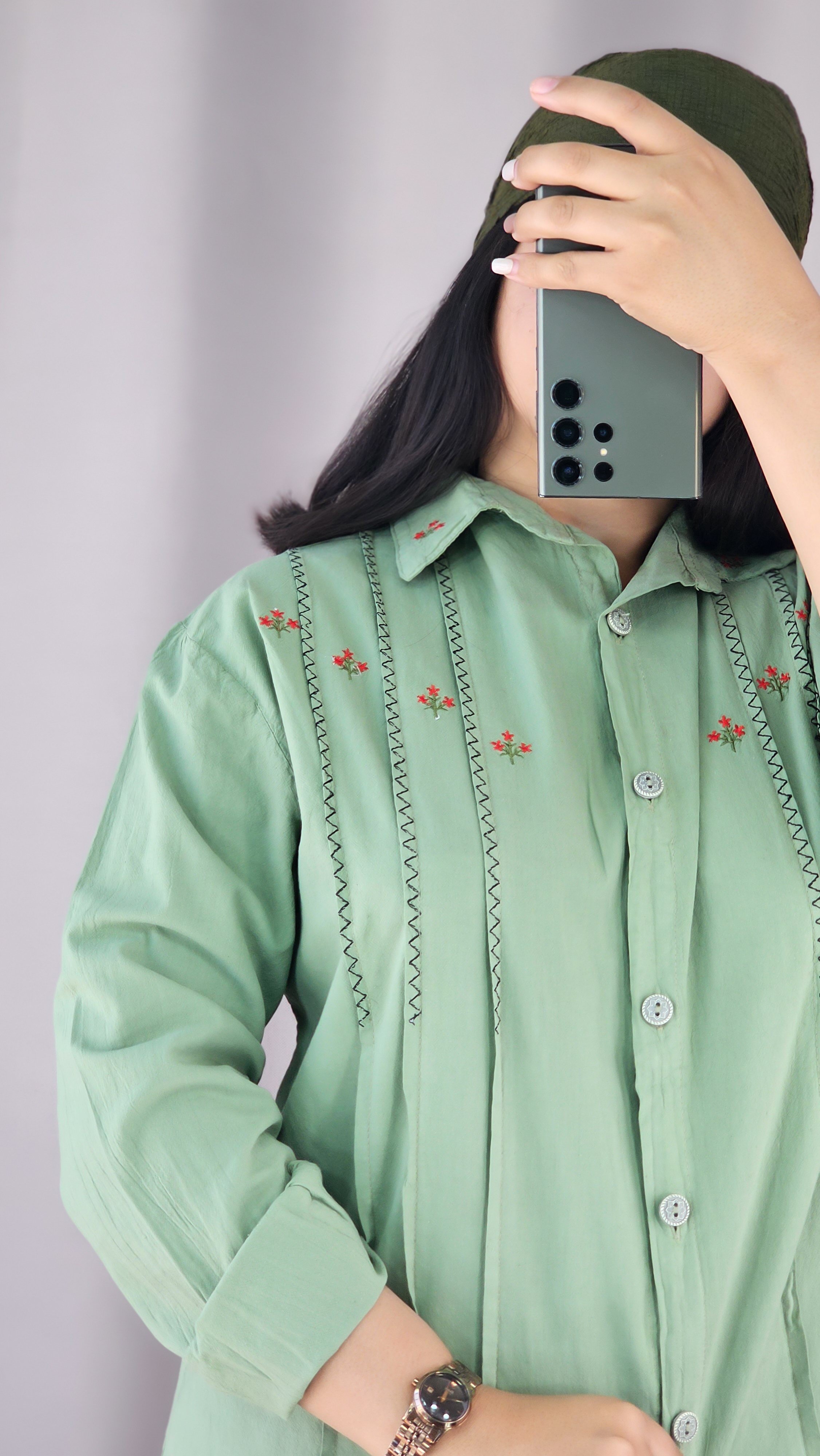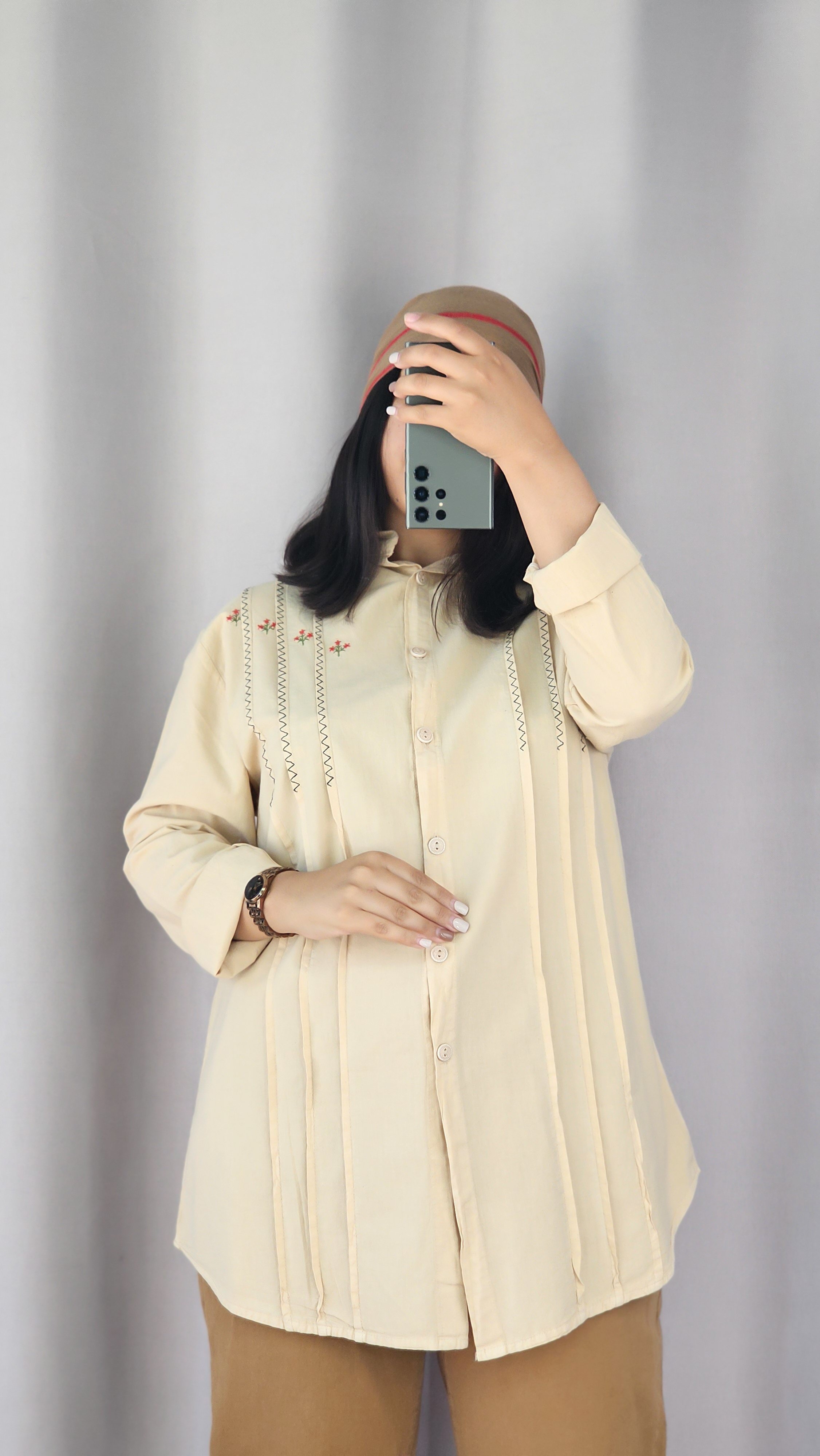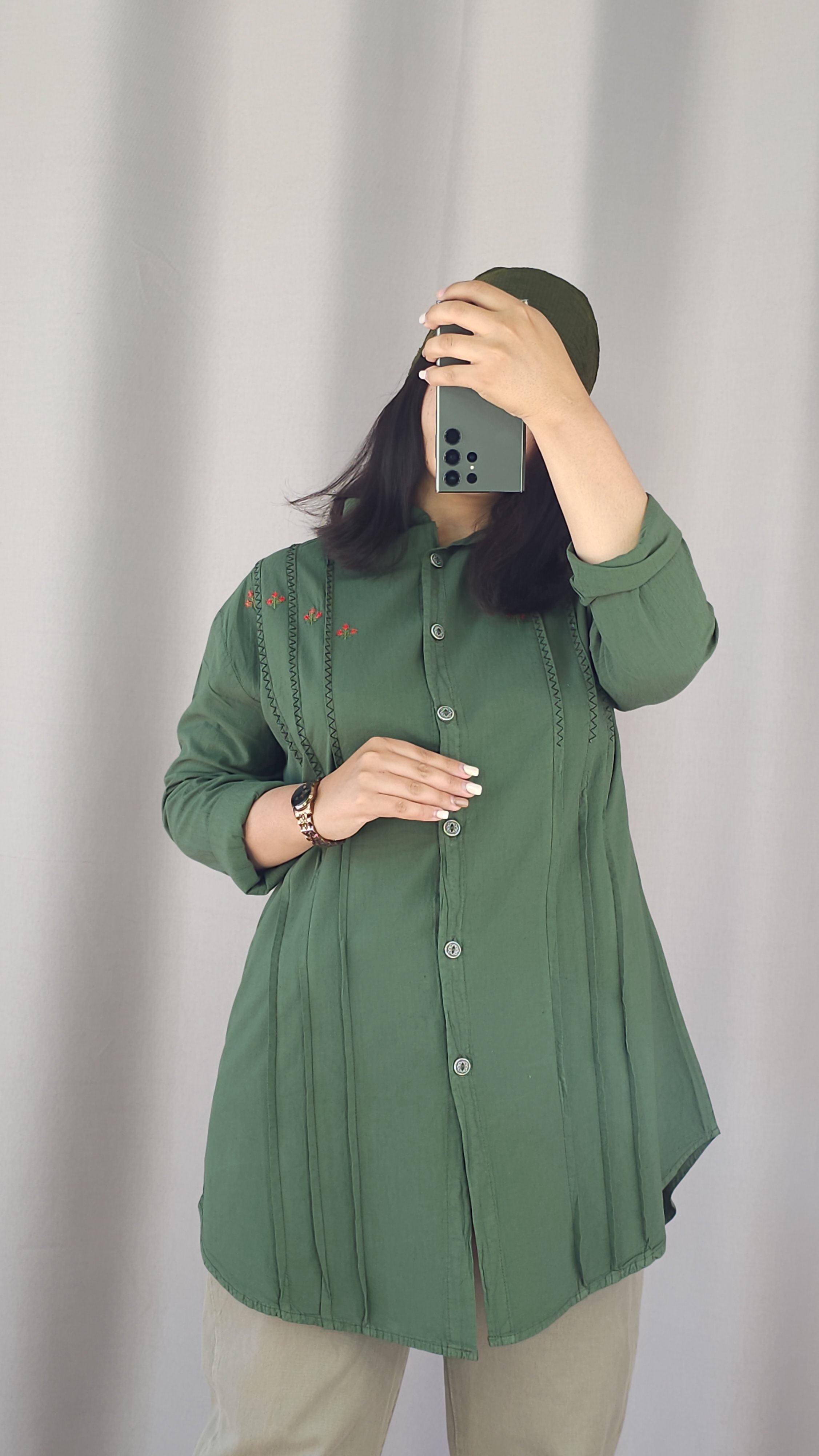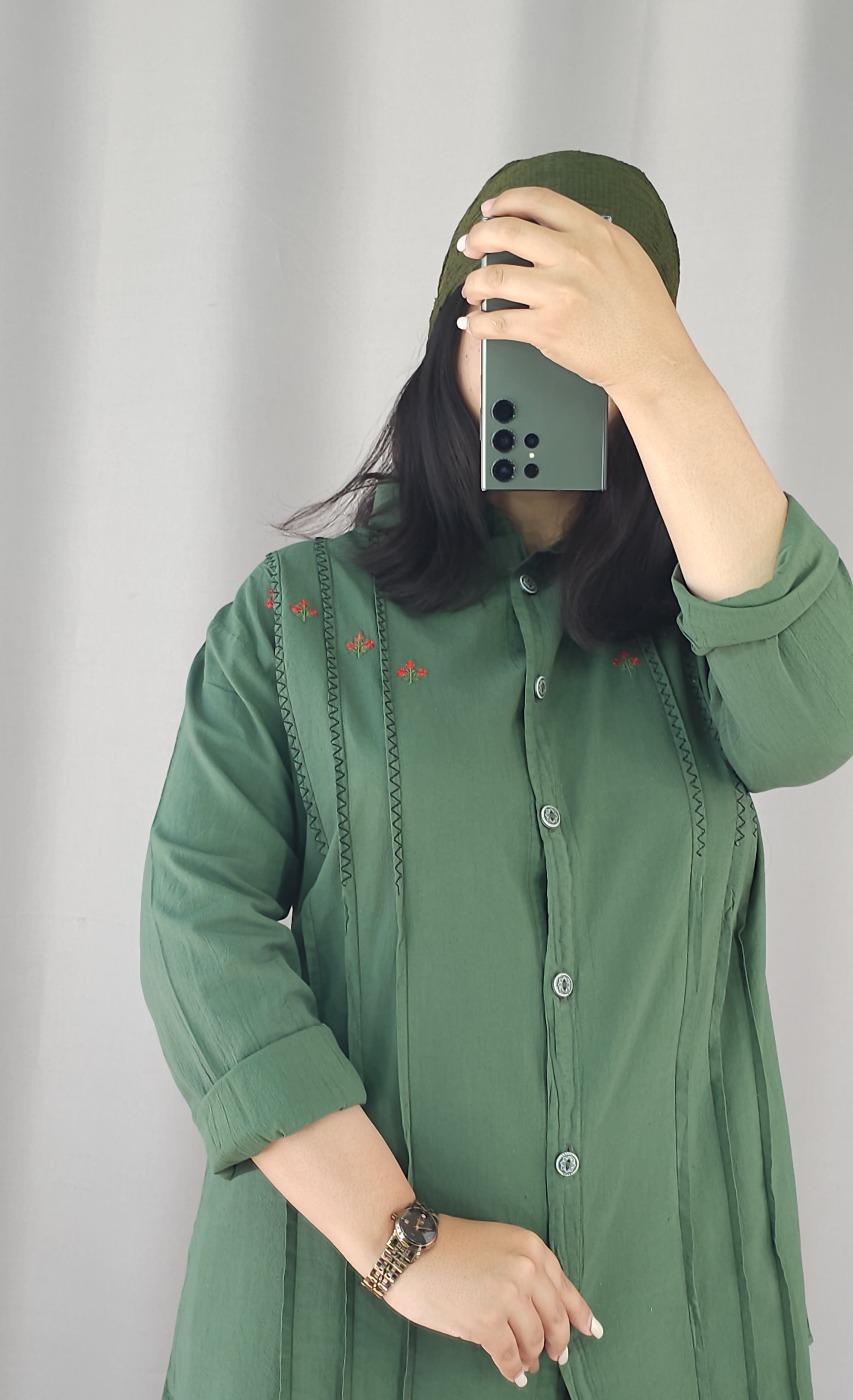 تونیک لاله🌹اگه دنبال یه مانتو هستی که براحتی استایل بشه و قد مناسبی داشته باشه🌸مانتو لینن گلدوزی لاله یه انتخاب عالیه🌸جنس اینکار لینن پنبه هست🌱اینکار شست رفته و تغییر رنگ و آبرفت نداره☁️پس با خیال راحت سفارش بدین☁️کیفیت عالی تماما پنبه ای☁️بالا تنه یه گلدوزی خیلی خوشگل داره که حسابی خاصش کرده☁️جلوی مانتو تماما دکمه کار شده☁️قد آستین کاملا بلنده و لبه آستین مچی و دکمه میخوره🌱فری سایزی مناسب 36-46🌱قد جلو 83/قد پشت 88/دور سینه 110/دور باسن 120/دور بازو 40/قد آستین از کنار یقه 72/